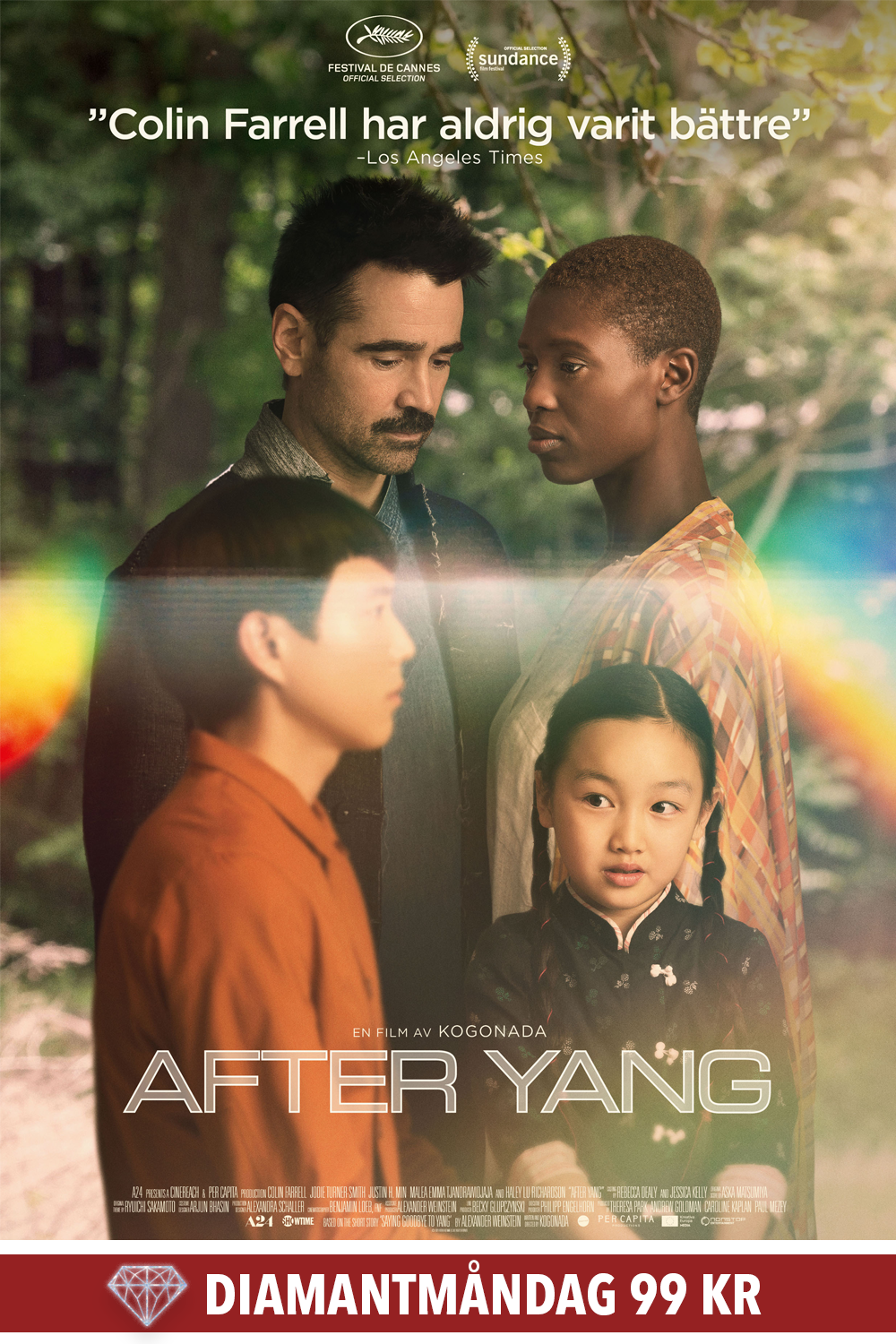 đDIAMANTPRIS 99 kr. LĂ€s mer om DIAMANTMĂ NDAG hĂ€r. đJake (Colin Farrell) driver en te-butik för konnĂ€ssörer och lever ett vĂ€lfungerande liv med sin fru, dotter och hennes "storebror" Yang. Yang Ă€r en android i form av en verklighetstroget syskon tĂ€nkt att hĂ„lla dottern sĂ€llskap och hjĂ€lpa henne knyta an till sitt kinesiska ursprung. NĂ€r Yang drabbas av ett plötsligt systemfel pĂ„börjar Jake sökandet efter en reparatör. NĂ€r han navigerar mellan statens godkĂ€nda robotverkstĂ€der och den svarta marknaden upptĂ€cker han nĂ„got han inte rĂ€knat med: att livet passerat honom. Han börjar försöka överbygga distansen till sin familj, men kan man kompensera för den tid som flytt? After Yang Ă€r ett sjĂ€lfullt futuristiskt familjedrama om att Ă„tervinna nĂ„got man trott gĂ„tt förlorat, i regi av Kogonada (Columbus).
