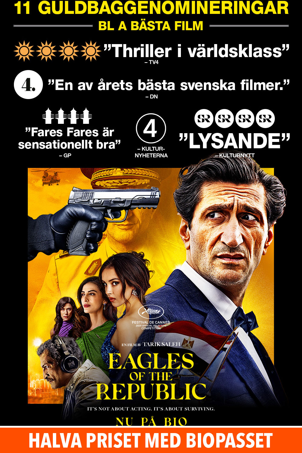 EAGLES OF THE REPUBLIC är en politisk thriller och den tredje och sista filmen i Tarik Salehs Kairo-trilogi efter framgångarna med The Nile Hilton Incident (Grand Jury Prize award, Sundance 2017) och Cannes-vinnaren Boy from Heaven aka Cairo Conspiracy (bästa manus, Cannes 2022). FIlmen är även utvald till Sveriges Oscarbidrag.